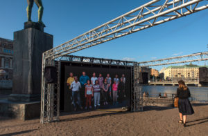 The Chorus of Begging and The Chorus of Giving at Strömparterren, Stockholm, Aug 2019. It is a chorus dialogue, for public sites, street screenings and art sites.